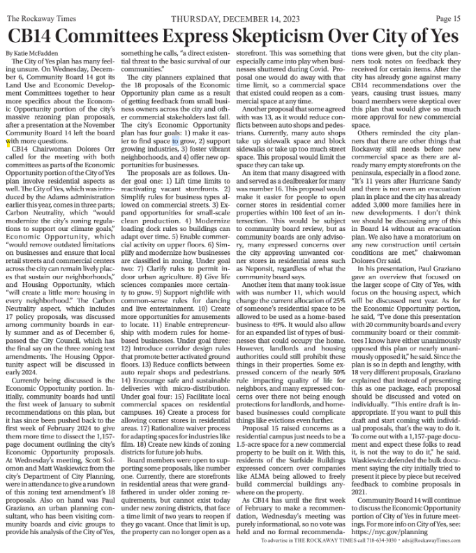 - The existing policy of not notifying neighbors or the public would be continued. This is unlike Nassau County where a large sign is placed in front of a property requesting a zoning change. Publication in the City Record and notifying the Community Board is inadequate, They should also notify local newspapers (Wave and Rockaway Times).